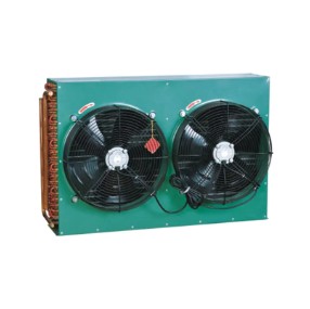Celosvetovo najpoužívanejší typ. Okolitý vzduch je tlačený cez rebrované cievky jedným alebo viacerými ventilátormi. Nie je potrebná žiadna vodná infraštruktúra , čím je inštalácia jednoduchá a náklady na údržbu nízke. Séria vzduchom chladených kondenzátorov Brozercool využíva vysokoúčinné hliníkové rebrové špirály z medených rúrok s EC motormi ventilátora, ktoré dosahujú špecifické miery odvodu tepla nad 1,8 kW/m².